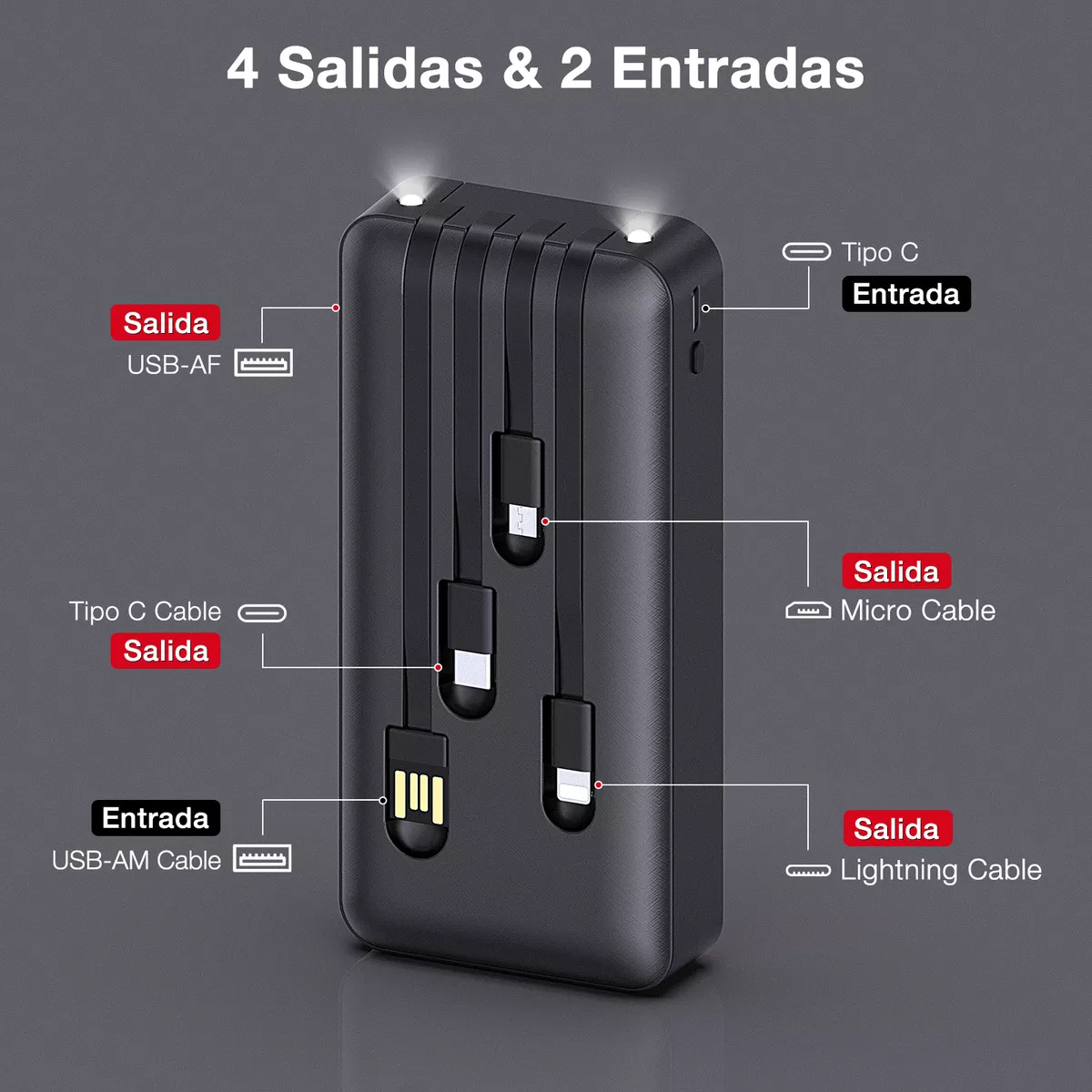 2) Este producto solo incluye 4 cables integrados y no cuenta con cables adicionales.