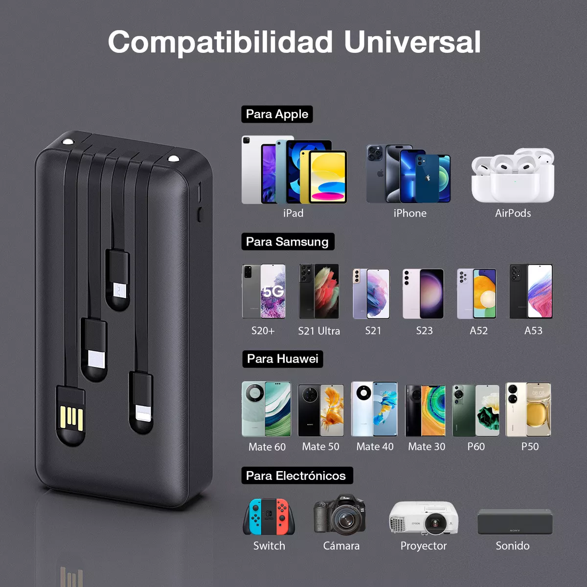 Universalmente compatible con todos los teléfonos móviles, tabletas, etc. |